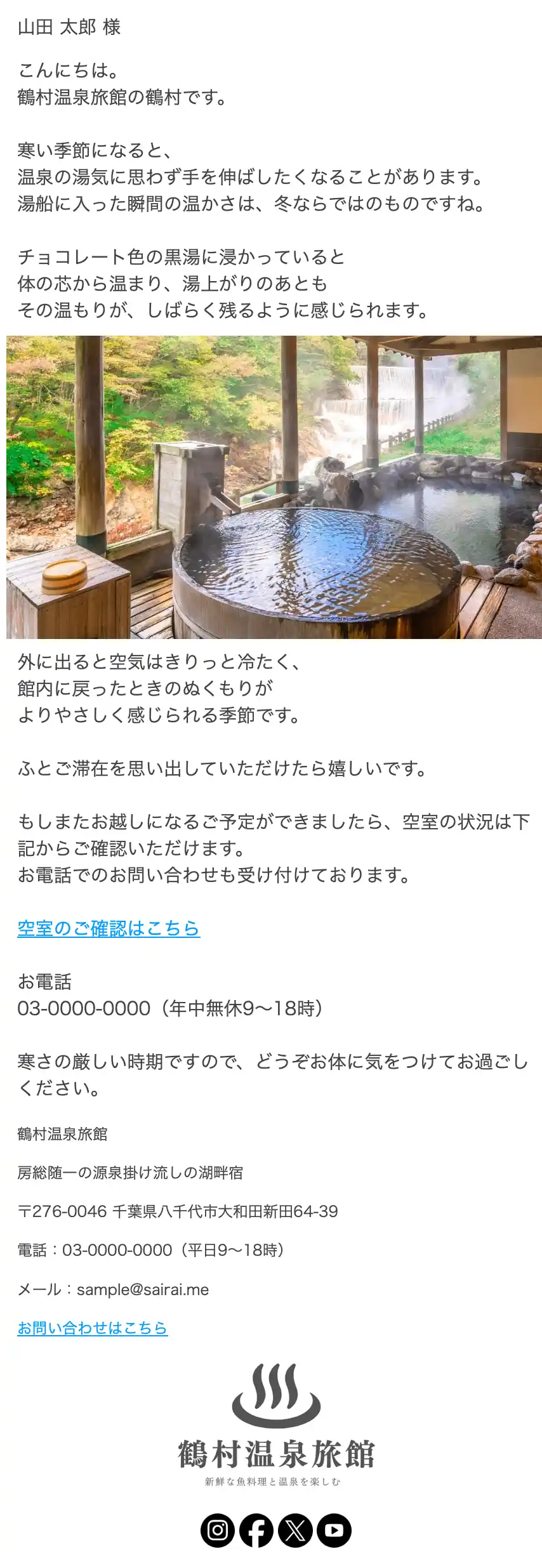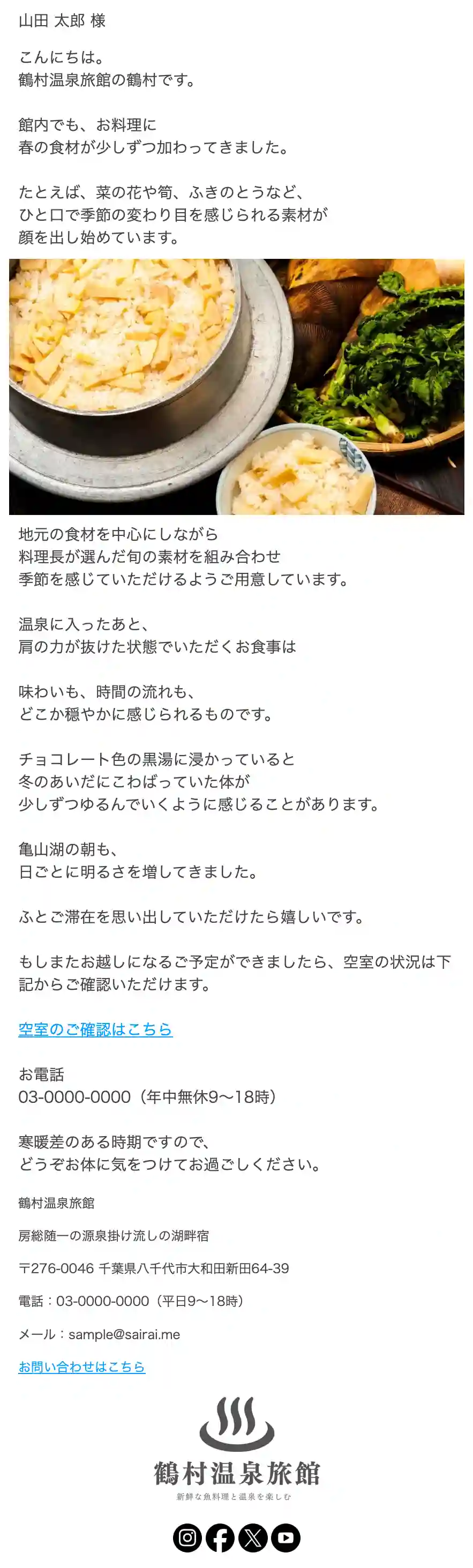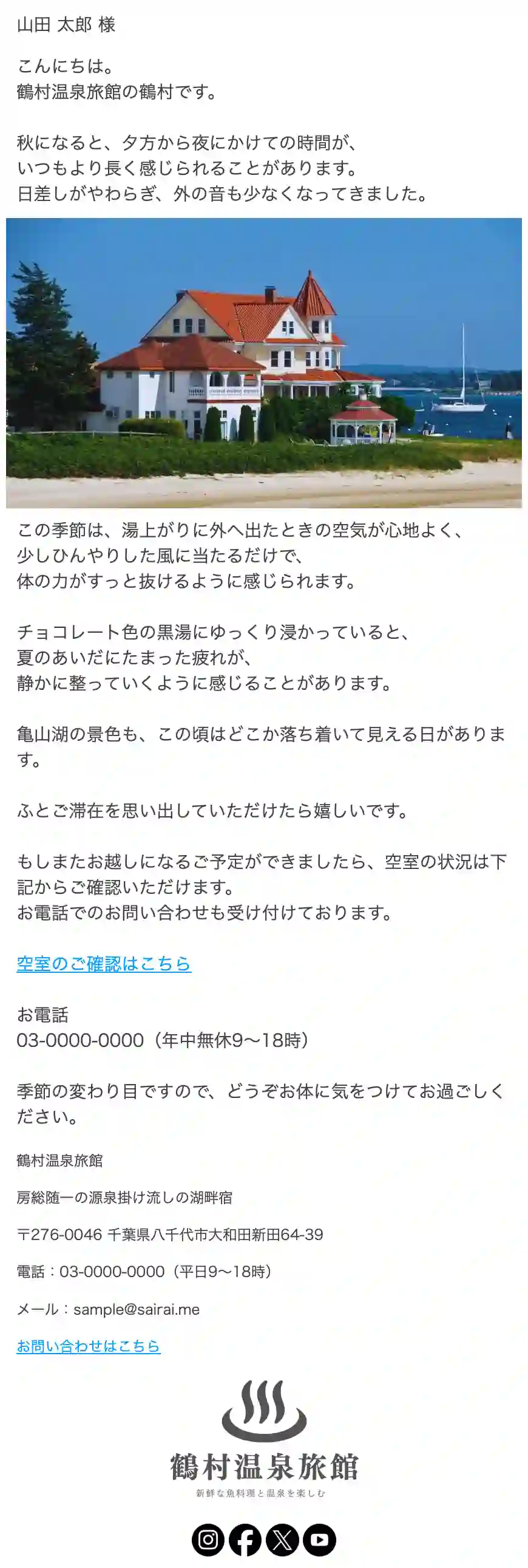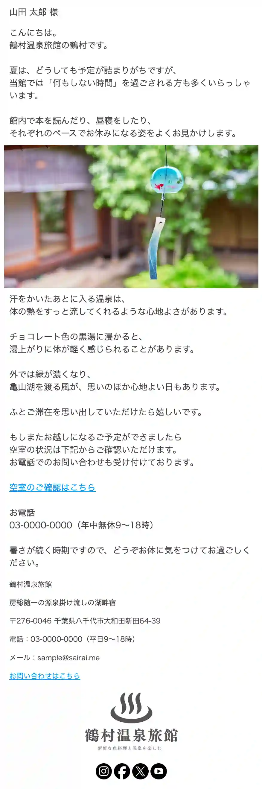 ※メール文章は、宿に合わせて作成・提案させていただきます。
